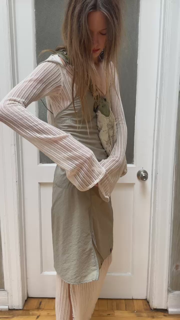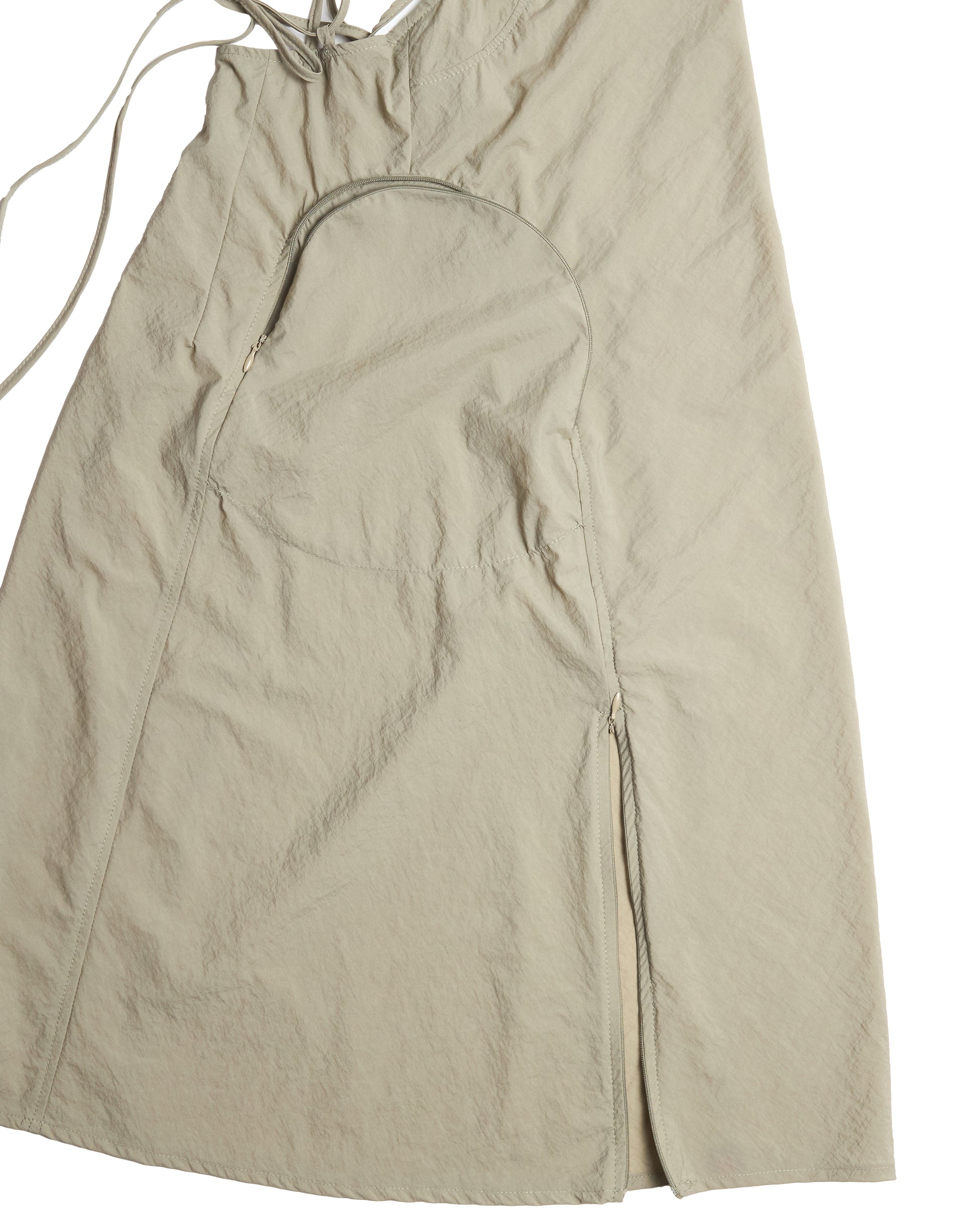 A line bias cut dress with adjustable straps, can be worn multiple ways. XL hidden pocket at the hip, and invisible zipper slit on the left leg.