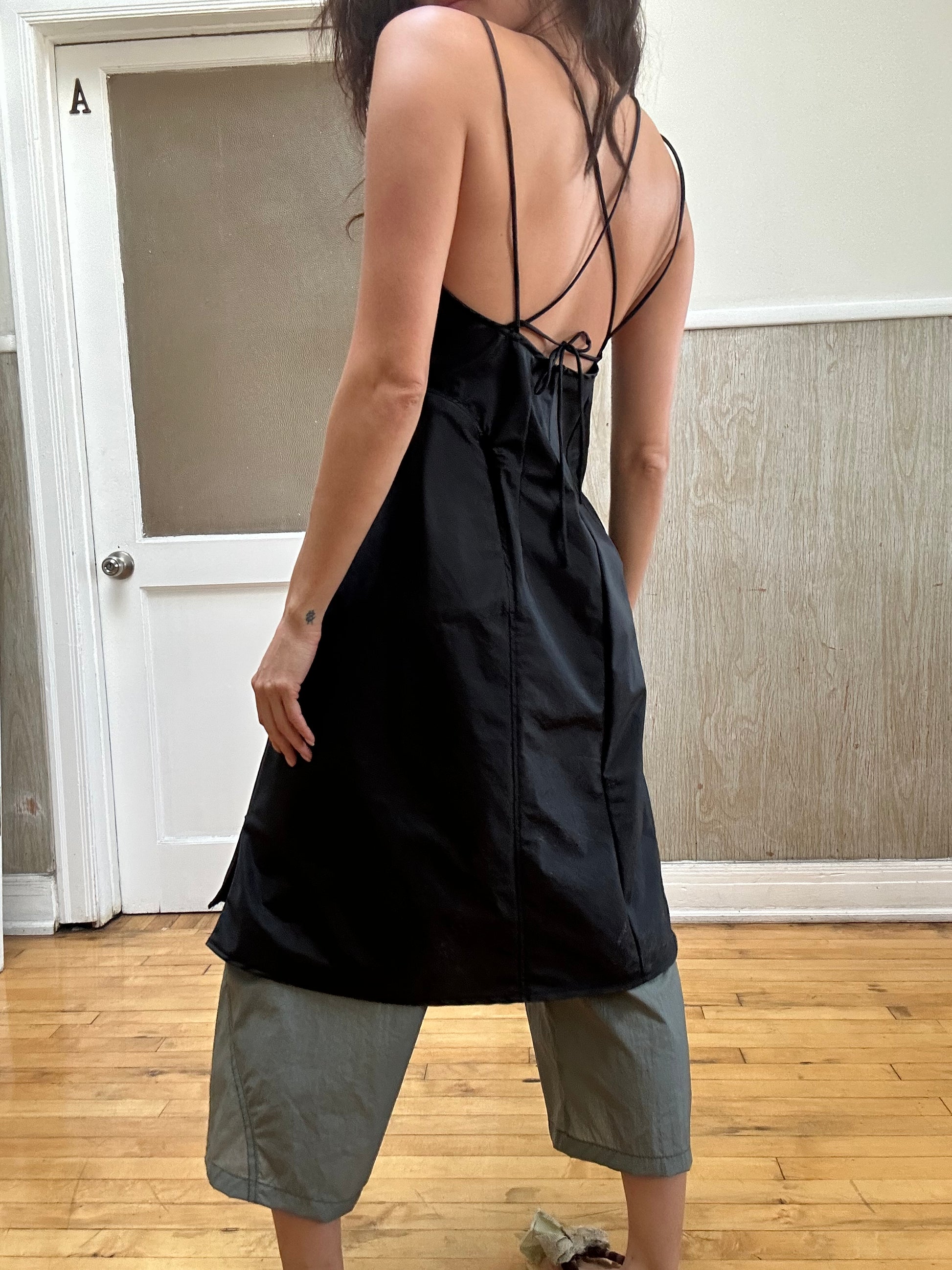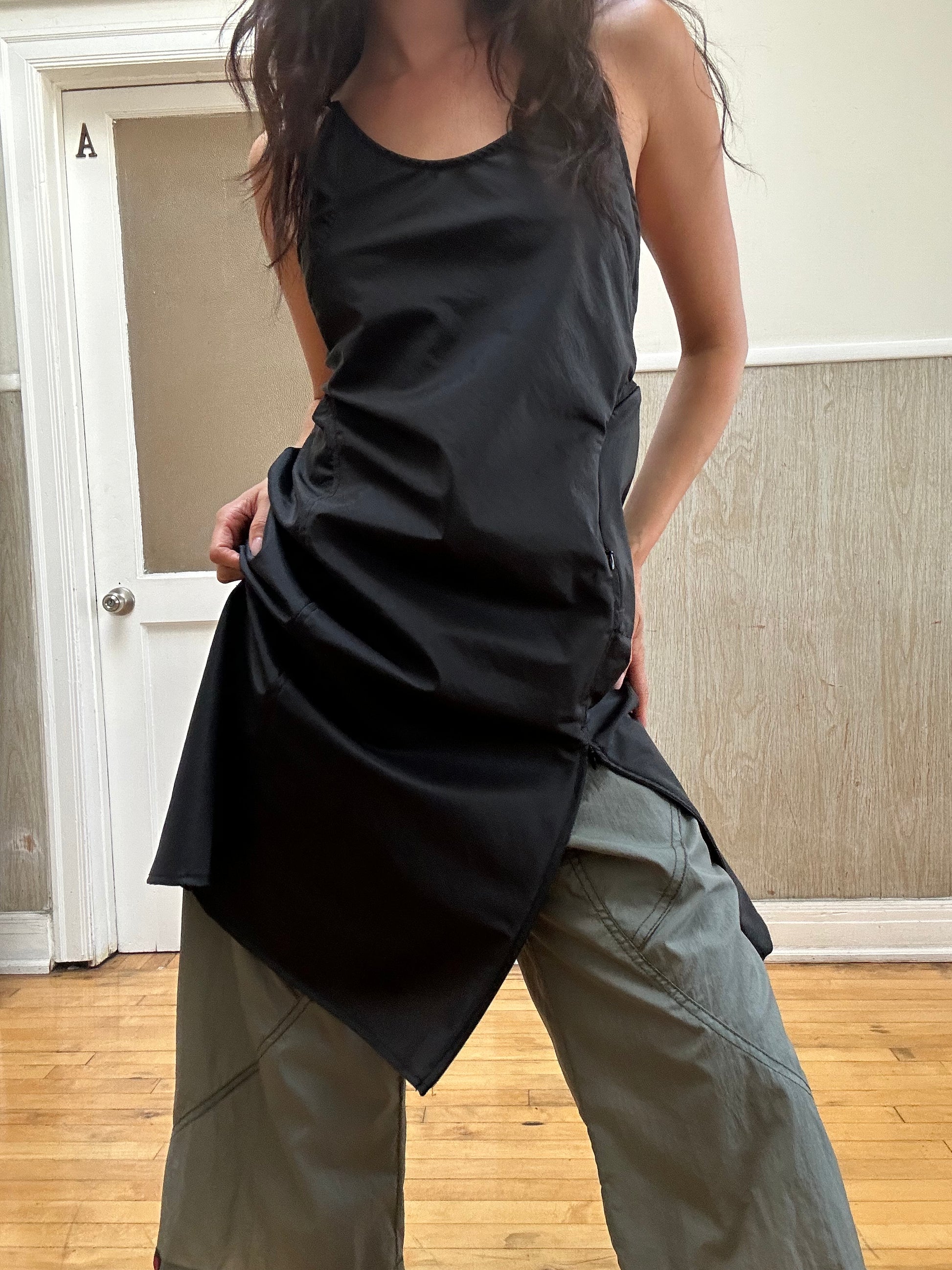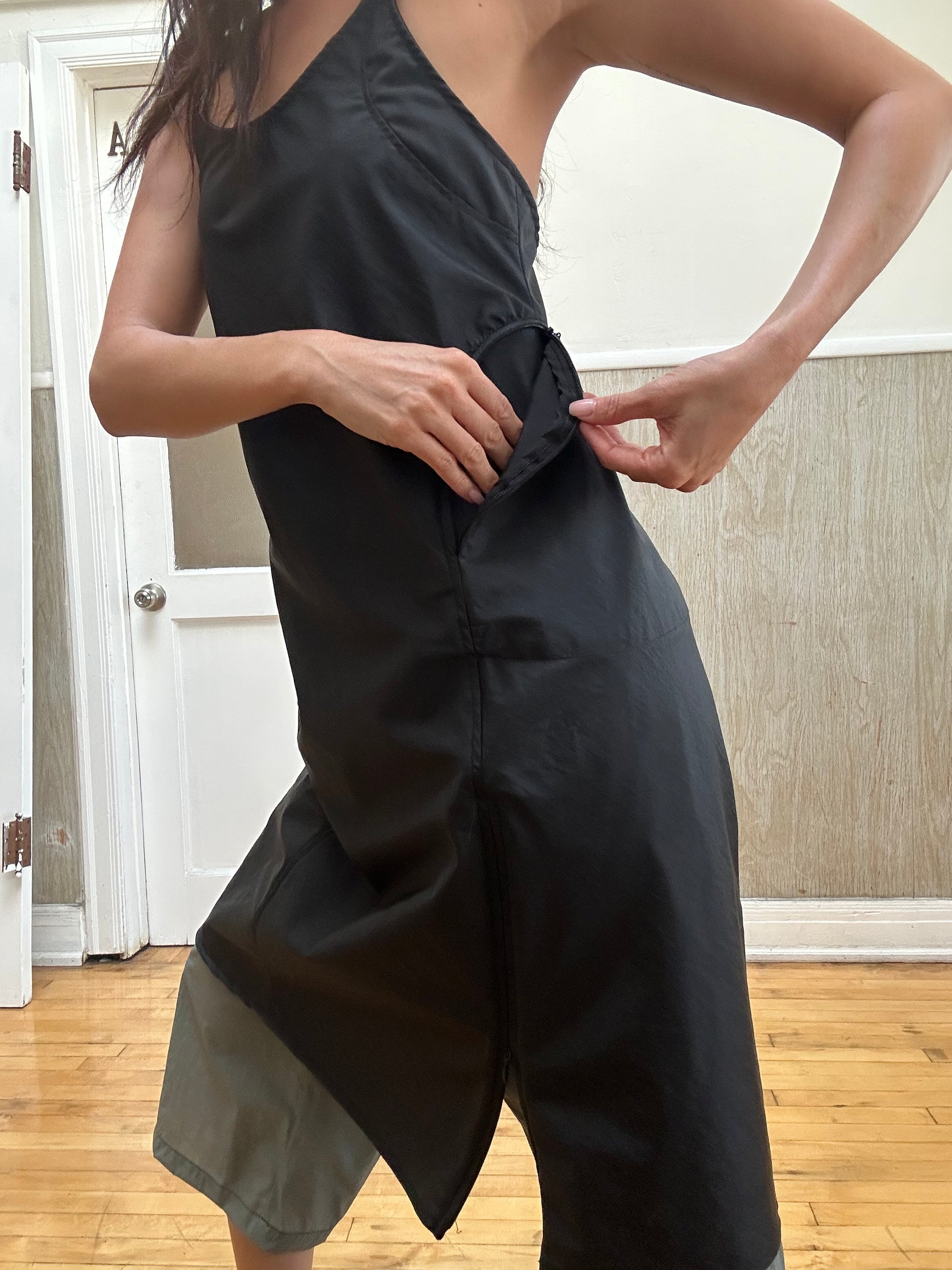 A line bias cut dress with adjustable straps, can be worn multiple ways. XL hidden pocket at the hip, and invisible zipper slit on the left leg.
