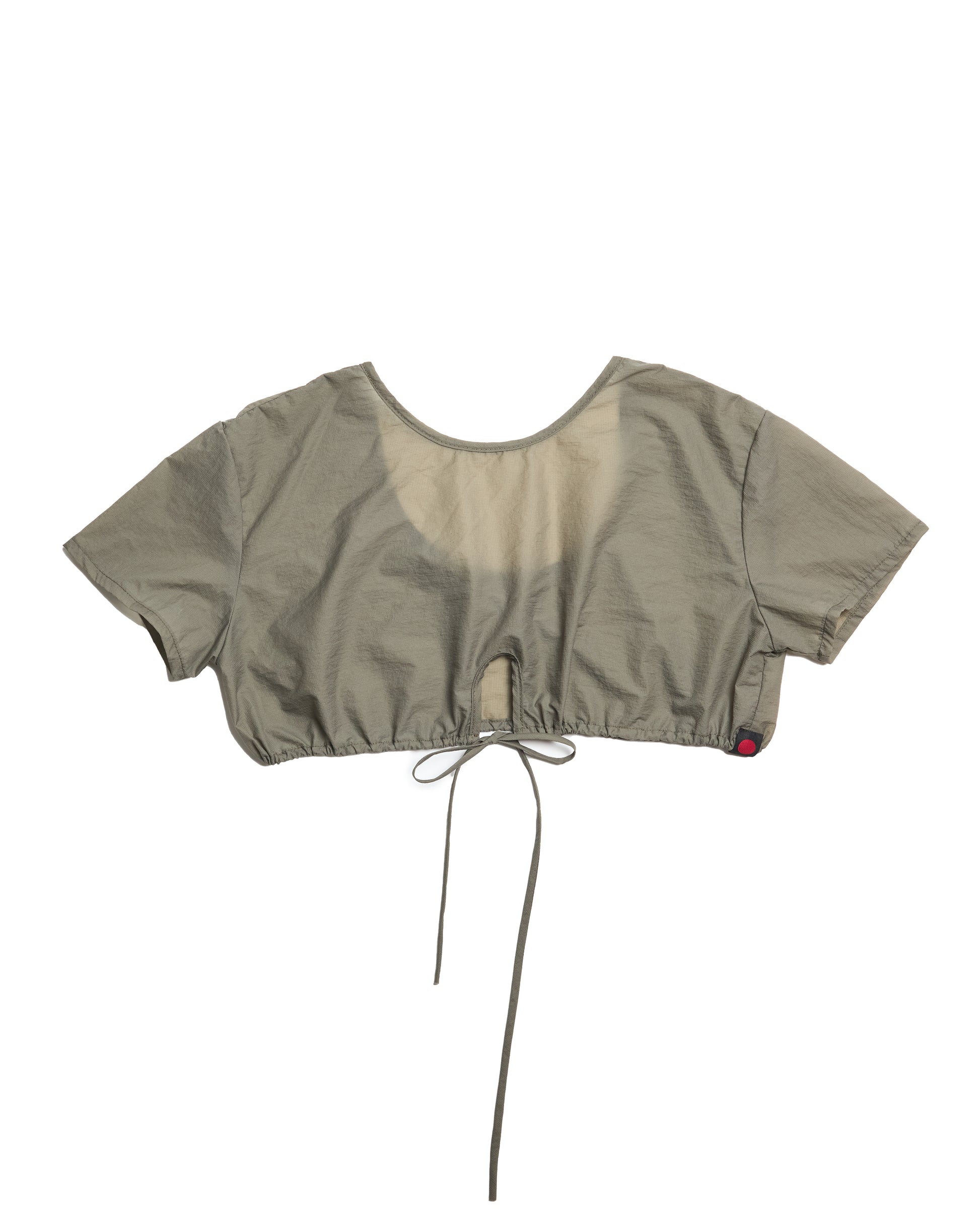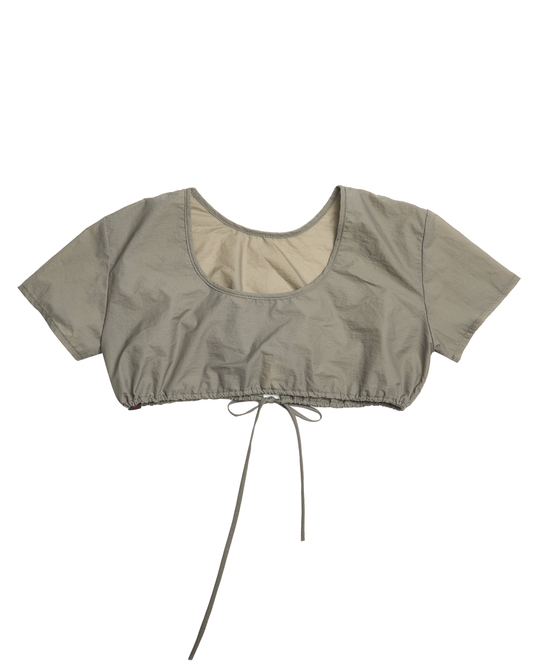 A little flirty cropped tie top made in the lightest weight ripstop- featuring a soft scoop neckline and an adjustable drawstring hem for the perfect cinched fit.