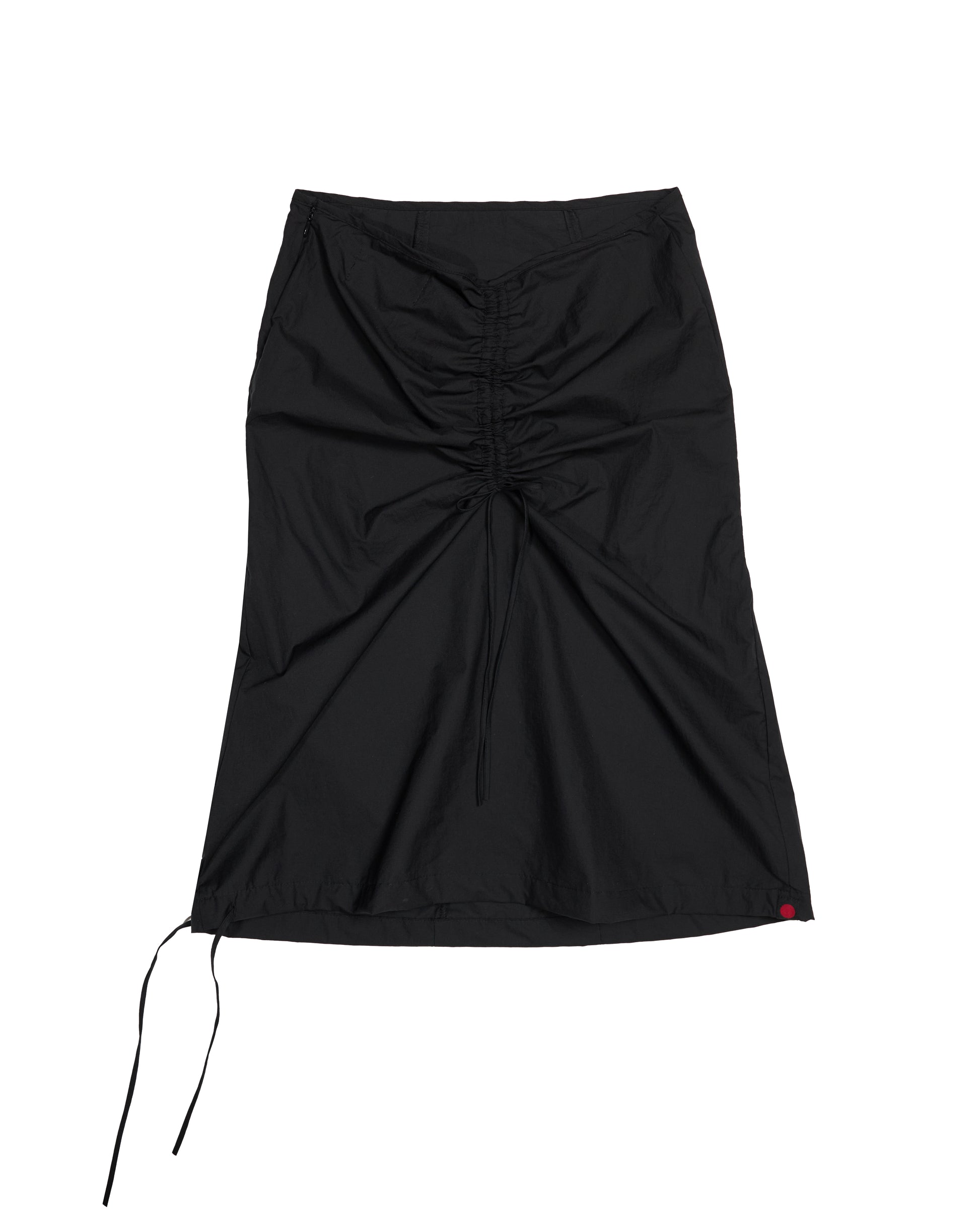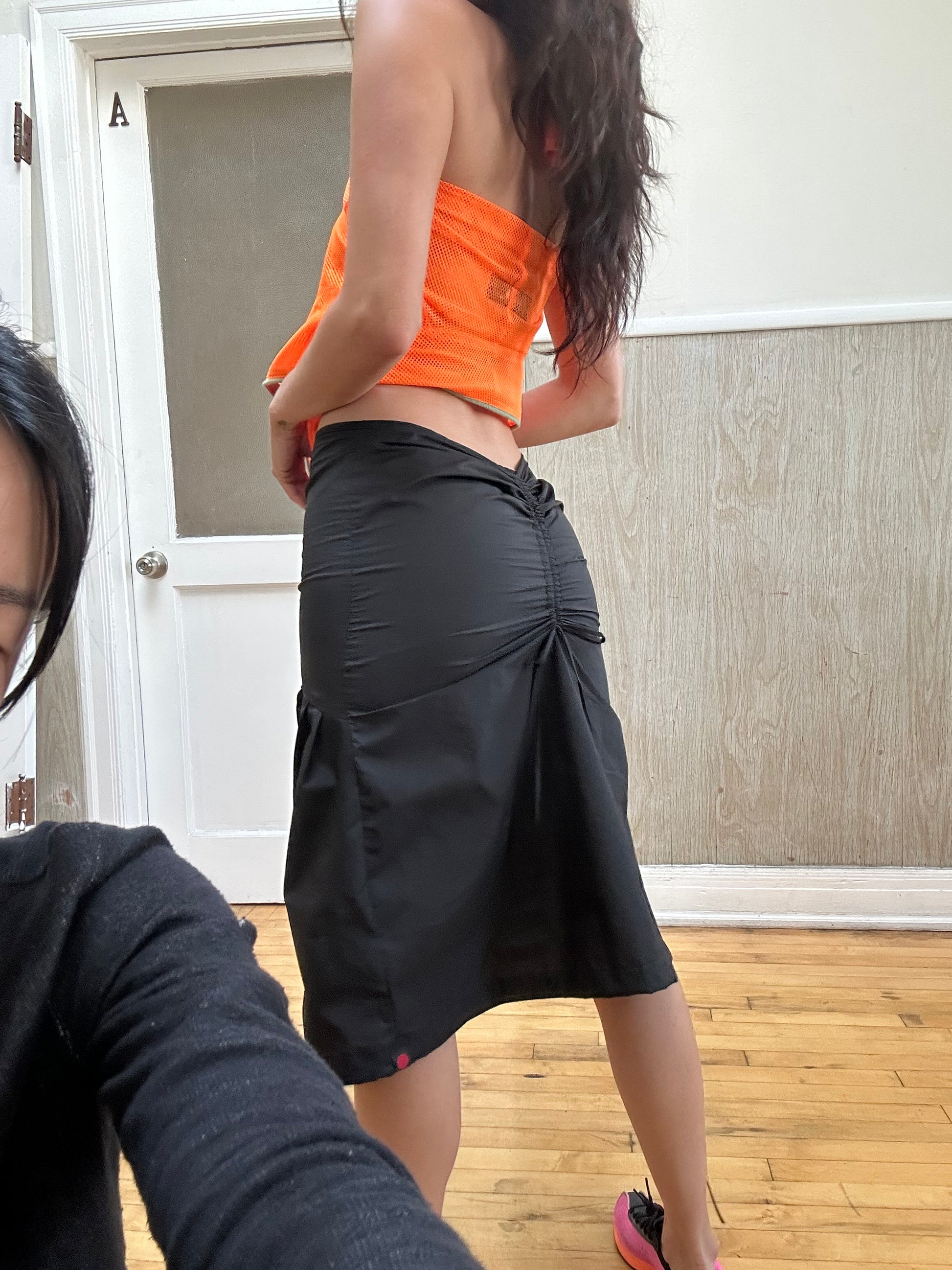 This lightweight nylon pencil midi skirt is perfect for layering.