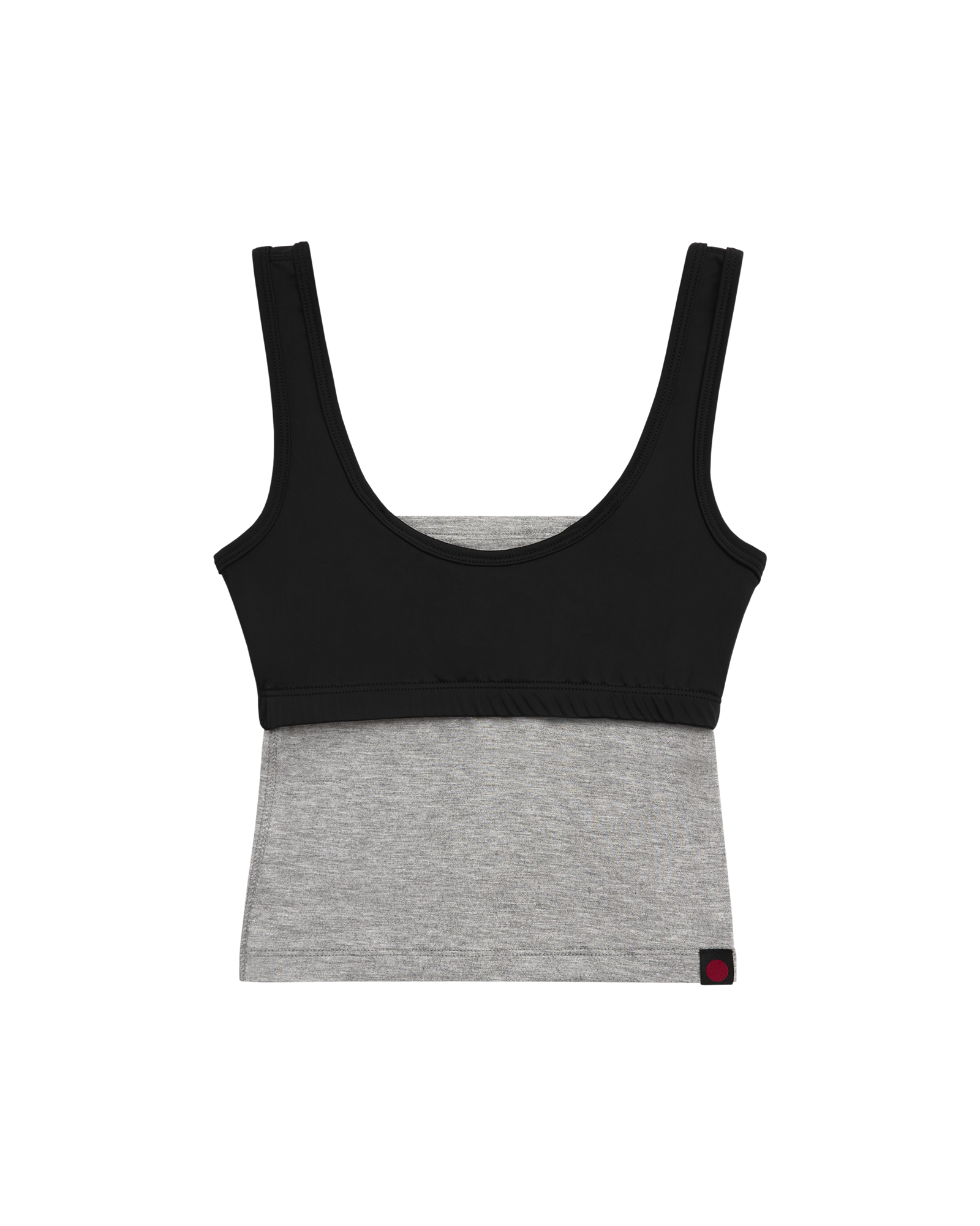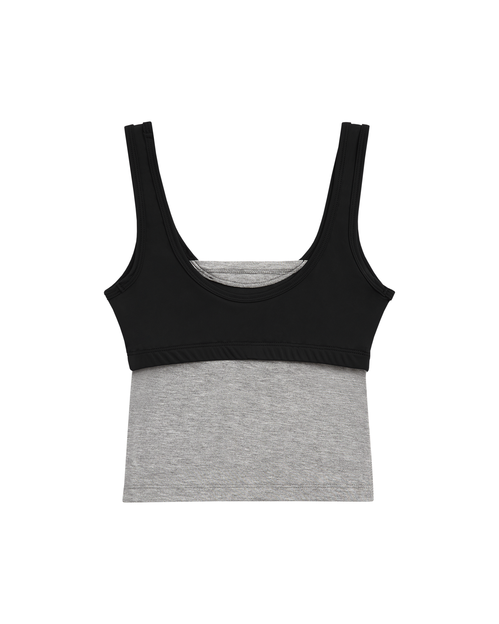 Introducing a new Gumi classic, the sports bra tank. A heavy tricot sports bra, attached to a soft modal jersey base. Perfect for an active lifestyle, the epitome of GUMI.